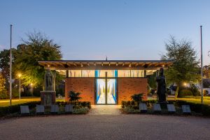 Aussegnungshalle in den Abendstunden (Foto: Stefan Nacke, 2018)